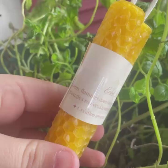 Façonnée à la main à partir de cire d’abeille naturelle, elle est formée de deux bougies liées par une mèche commune : une création poétique pour vos rituels d’amour, d’harmonie ou d’équilibre intérieur.